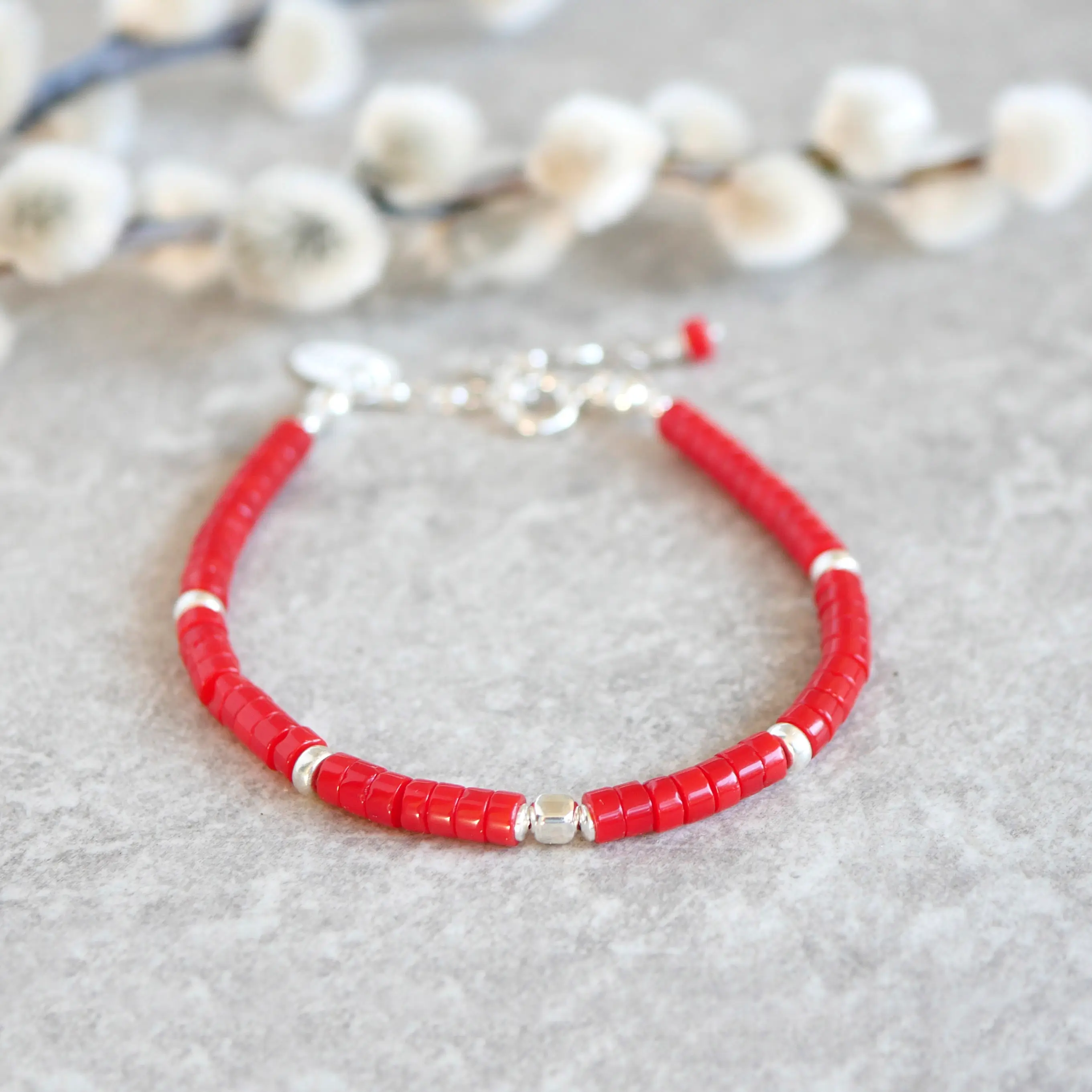 Bransoletka z czerwonym Koralem Mini - II w srebrze