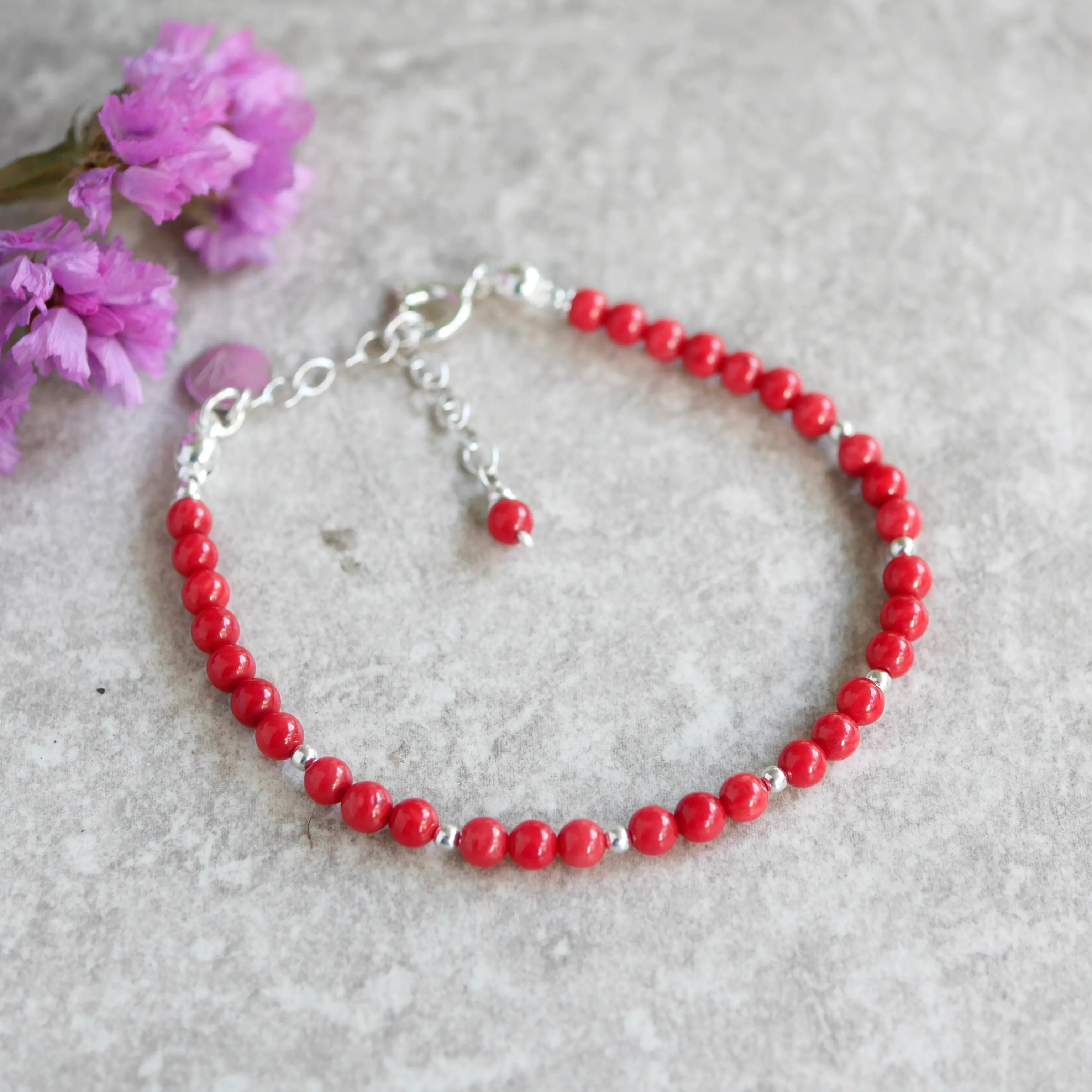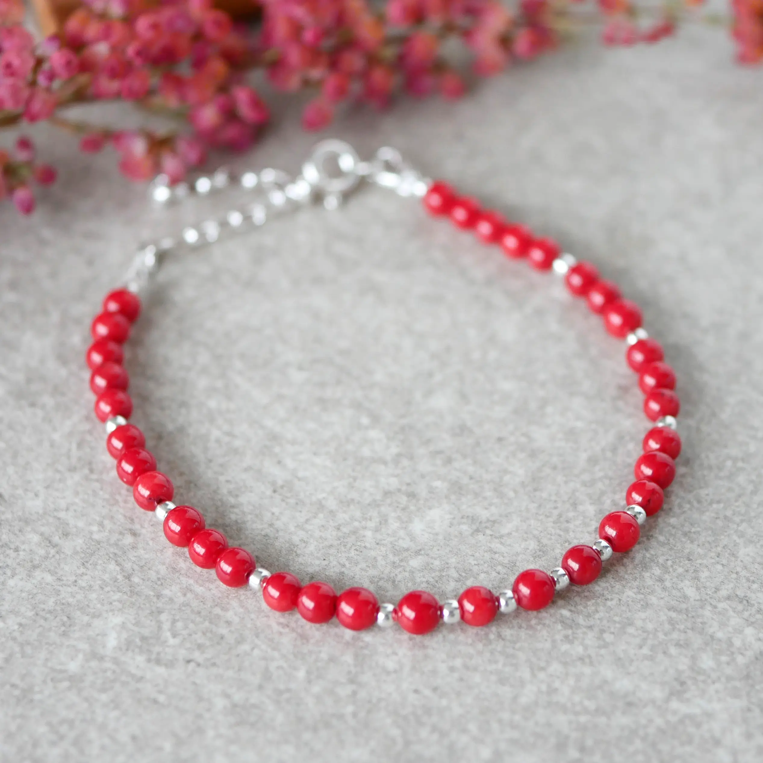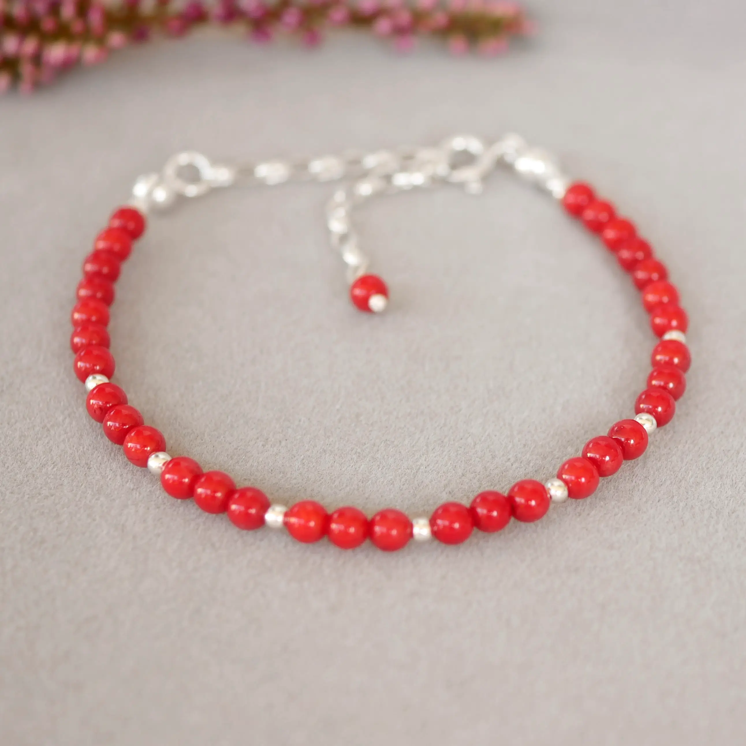Bransoletka z czerwonym koralem naturalnym MINI w srebrze 925