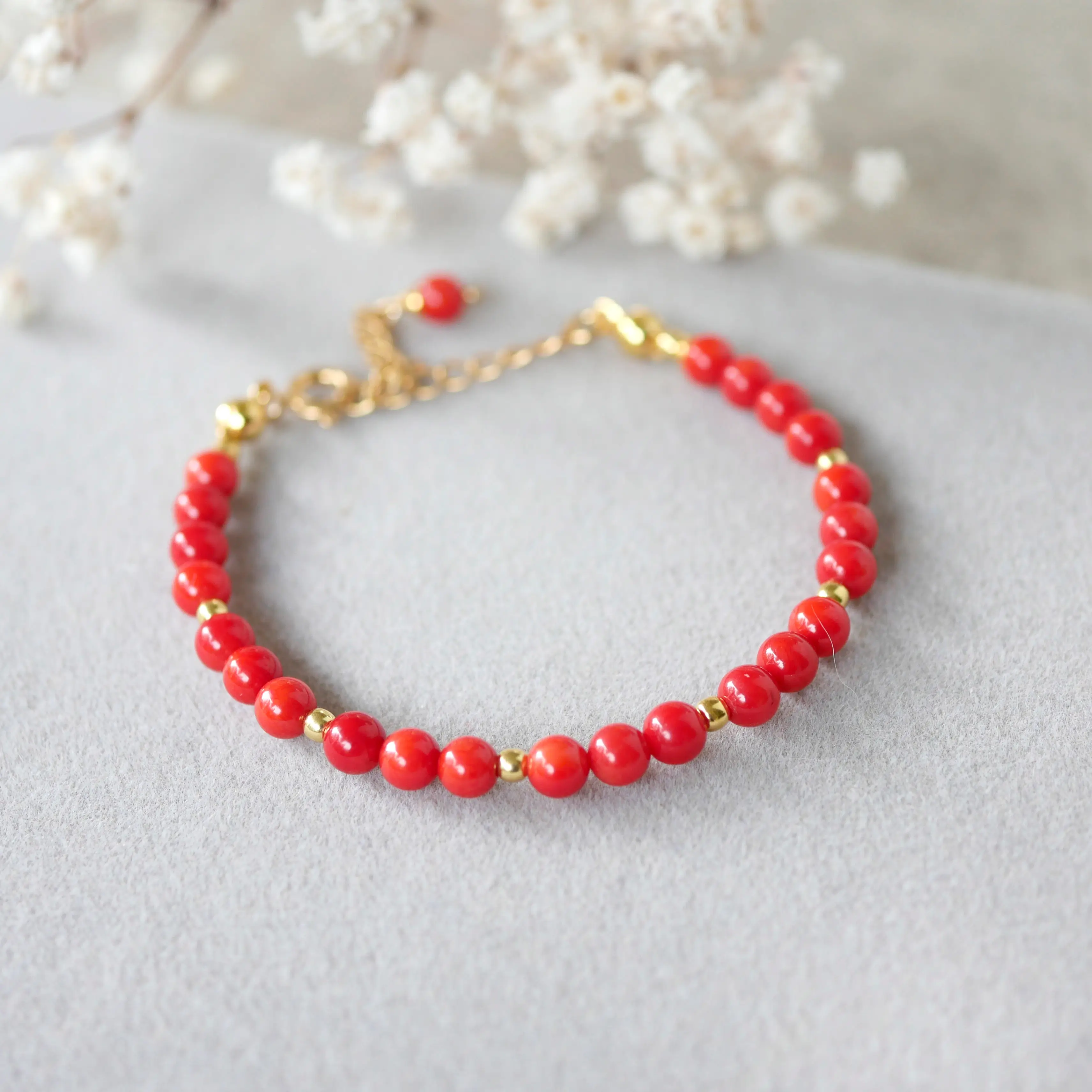 Bransoletka z naturalnego czerwonego korala z kolekcji MINI to subtelna forma z wyrazistym charakterem.