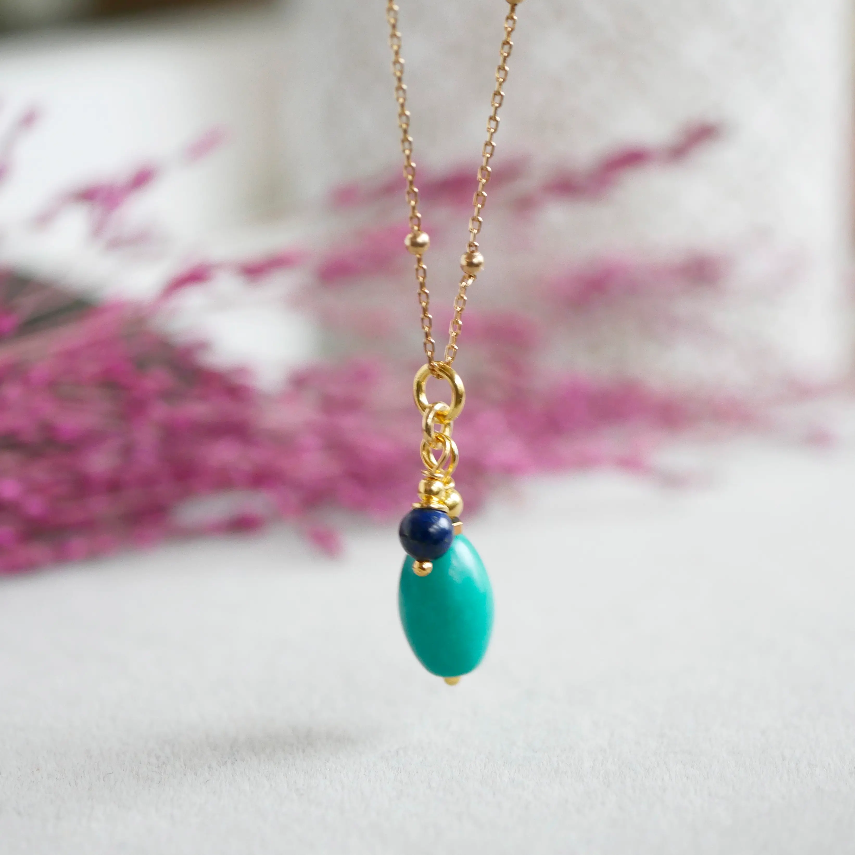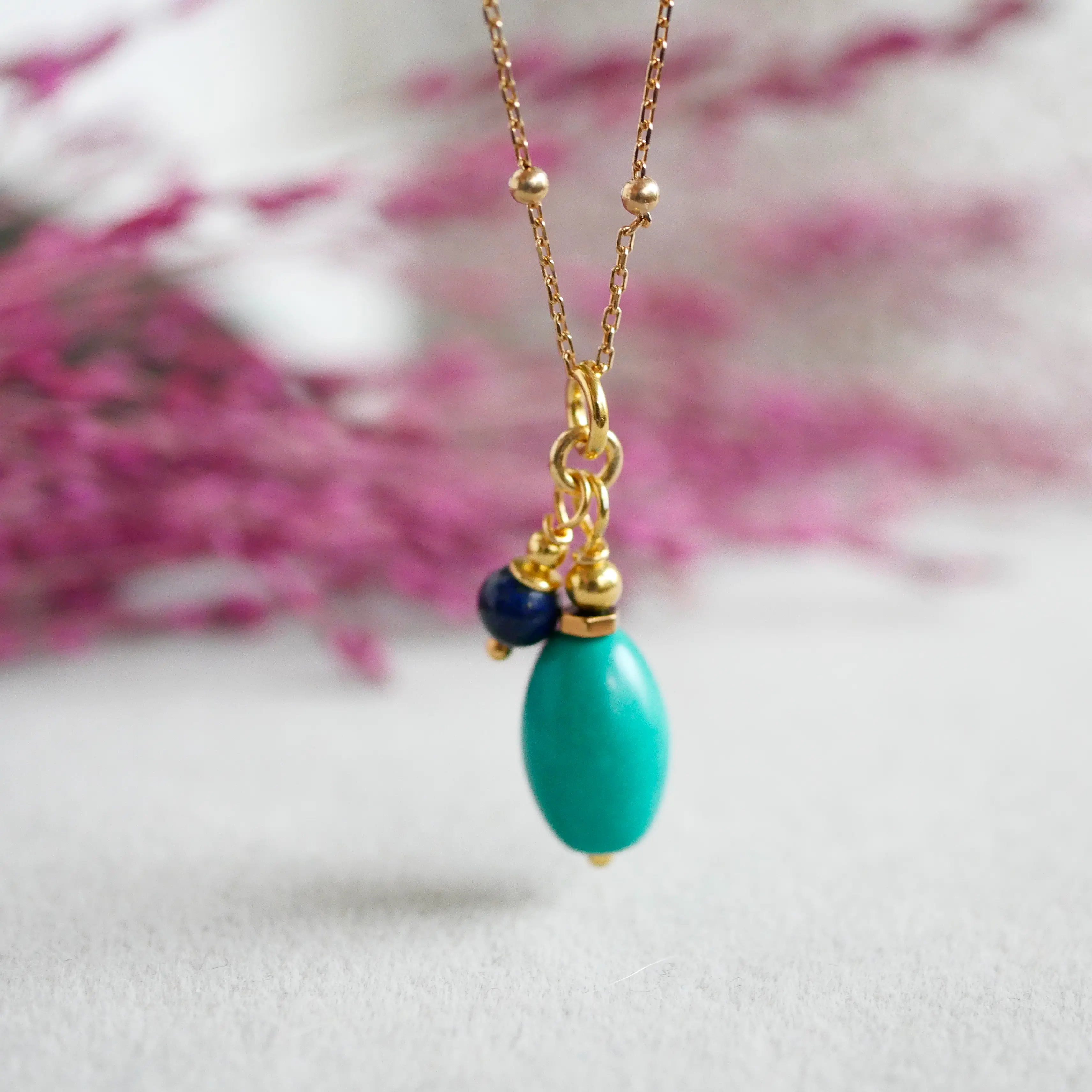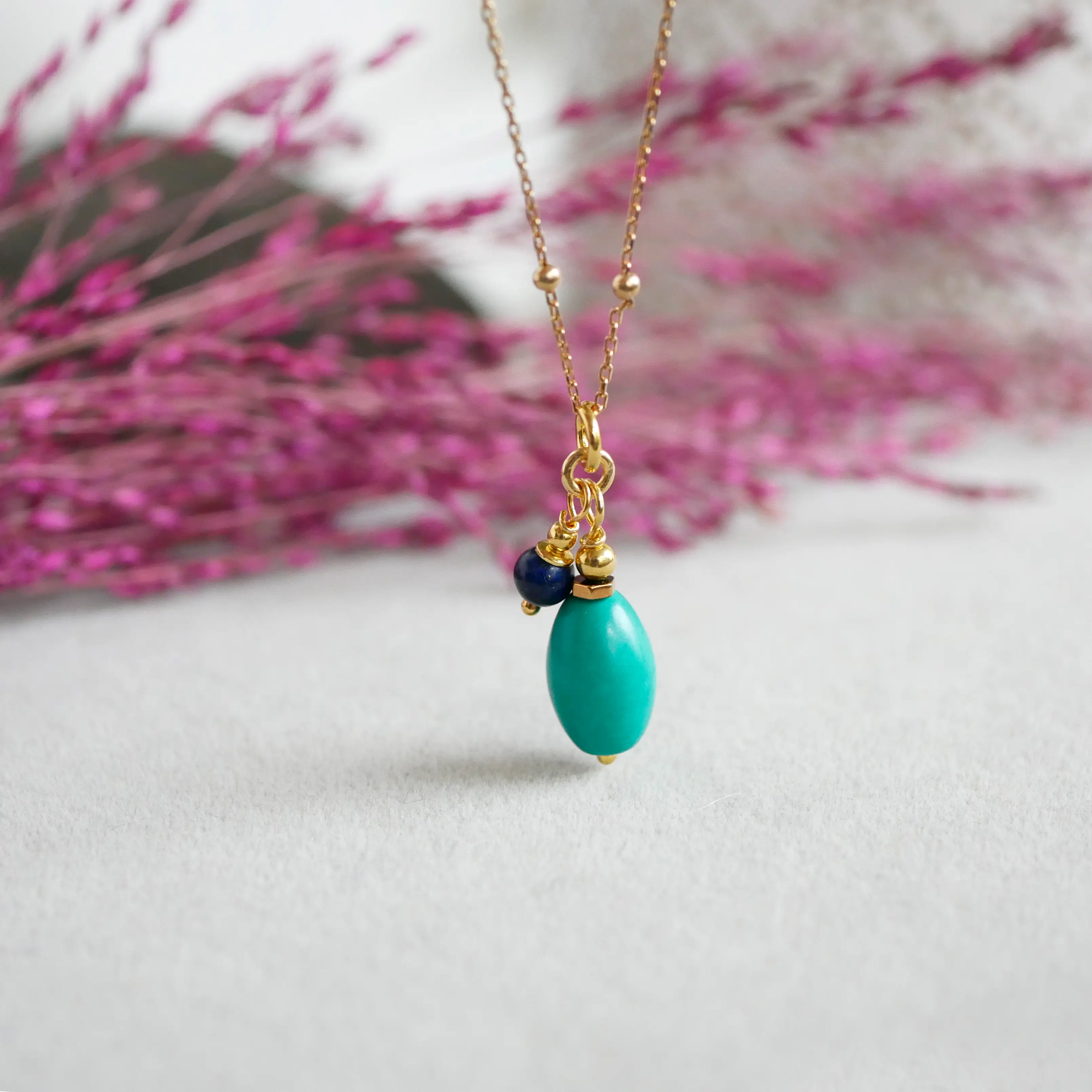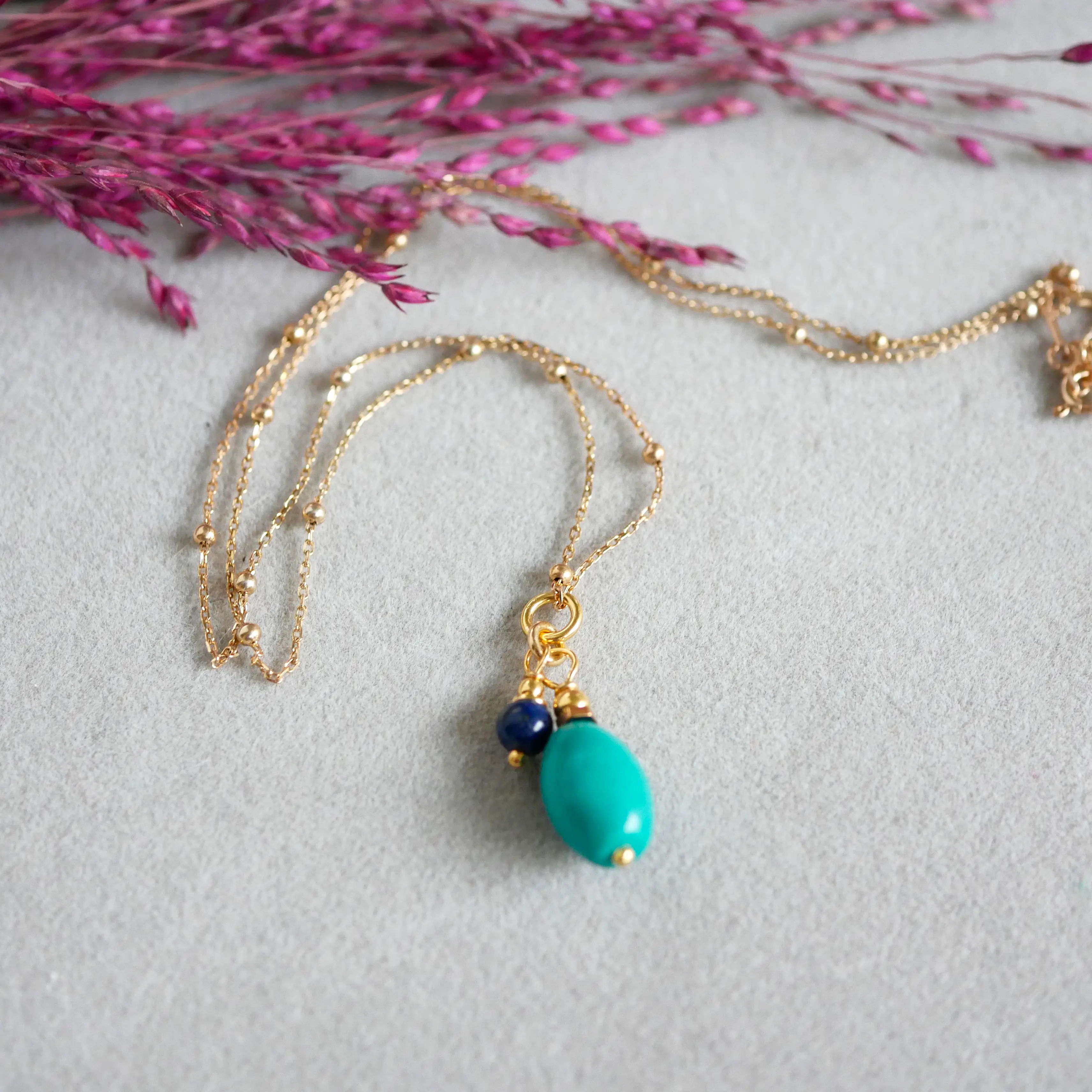 - Każdy naszyjnik powstaje ręcznie, z dbałością o najmniejszy detal. Naturalne kamienie różnią się od siebie odcieniem i strukturą, dzięki czemu Twój egzemplarz jest jedyny w swoim rodzaju.